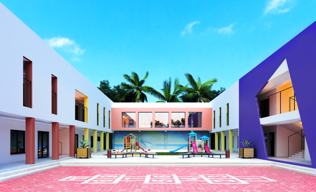 This rendering depicts a modern school campus centered around a safe, open courtyard that encourages play, learning, and community. The clean architectural lines, vibrant colors, and landscaped outdoor spaces create a welcoming, child-focused environment designed for both learning and well-being.Queen Mother Hehma and Nana Baan honored Malahk Academy, Ghana with their distinguished presence at the Ground Breaking Ceremony on September 12, 2024. Their participation marked a significant moment, symbolizing community support, cultural continuity, and shared commitment to the future of education.My husband, Minister Malahk B. Israel was a dedicated educator and visionary whose legacy continues to shape countless young lives. His profound guiding principle, “I am a child; what I see I rise to be,” embodied his commitment to unlocking the potential of every child, with a special focus on empowering youth of African descent. His vision is being realized through the building of Malahk Academy in Ghana,West Africa. (This statement goes with the 2 of us.)
